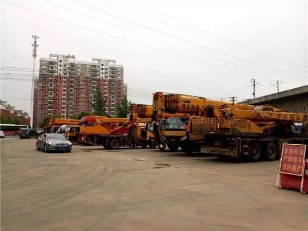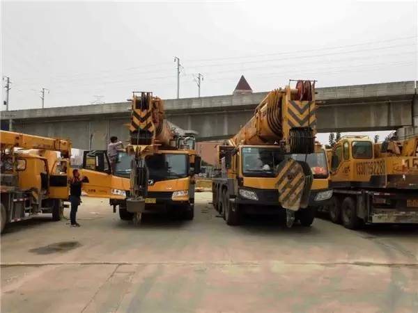 李小旺热情地将我们带到他的吊装基地,一辆辆“战马”整齐排成一排欢迎主人检阅。刚下完雨,工人师傅们正在给车辆保养,保养完毕后它们将各自奔赴不同的战场,爱车如子的李小旺亲自爬上车逐一查看保养情况。