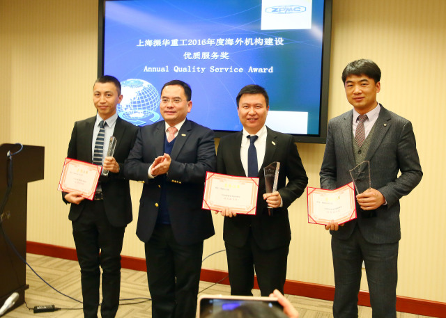 会上,黄庆丰为2016年度优秀海外机构和优秀管理者颁奖,授予南非子公司、美国子公司、越南办事处三家海外机构“2016年度市场开拓及最佳绩效奖”,授予美国子公司、阿布扎比分公司、韩国合资公司三家海外机构“2016年度优质服务奖”,授予南非子公司施俊“2016年度海外机构优秀管理者”称号,以表彰他们在2016年度为公司海外业务发展做出的杰出贡献。