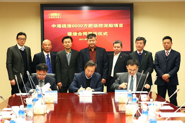 2月22日, “上海航道局中港疏浚2艘6500方耙吸式挖泥船建造合同”的签约仪式在振华重工举行。