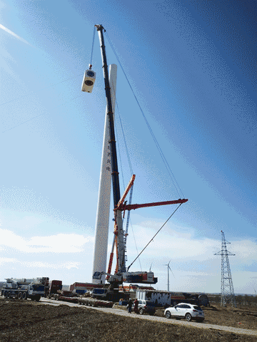 据中联重科现场技术服务负责人谭贵反馈,由于整个施工过程配合严密,服务团队快速响应,截至3月下旬,已完成9台风电机组的吊装。