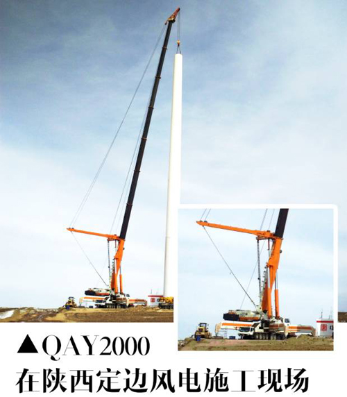 从去年年底至今,被誉为“风之子”的中联重科QAY2000全地面起重机,毅然挺立于此,为黄土高原上的25台风电机组实施吊装。