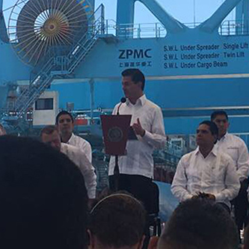 4月4日,墨西哥拉萨罗卡德纳斯市(Lazaro Cardenas)马士基码头举行开港仪式。墨西哥总统恩里克•培尼亚•涅托(Enrique Pena Nieto)、丹麦首相拉尔斯•勒克•拉斯穆森(Lars Lokke Rasmussen)亲临现场,并在ZPMC岸桥旁发表演讲。