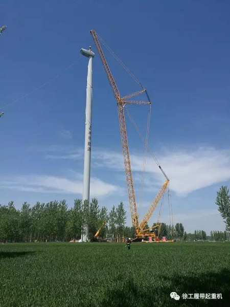 近日,河南兰考某风场,徐工1250吨级的XGC16000履带起重机将一台远景2.2MW风机机舱成功吊装至140米高的塔筒上,创造了陆上最高风机安装记录,这是继徐工800吨履带起重机成功在安徽、河北等地完成120米风机吊装后的又一标志性力作。