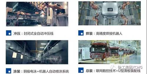 最先进的工艺:全新的徐工重卡制造基地拥有行业最先进的制造设备与工艺,包含冲压、焊装、涂装、总装、检验等完整的制造工艺,实施智能化制造、信息化管理的运营和管理模式,确保高端制造。
