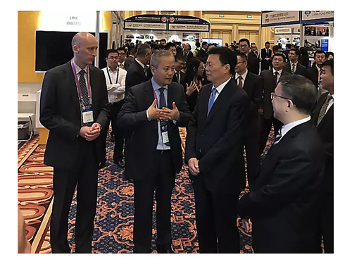 会议期间,我们的展位还迎来了中国商务部副部长兼国际贸易谈判副代表俞建华先生的莅临参观。卡特彼勒集团总裁杜乐谦 (Bob De Lange)先生,与卡特彼勒全球副总裁、卡特彼勒(中国)投资有限公司董事长陈其华先生一起,向俞副部长详细介绍了卡特彼勒“智能机器时代”数字技术战略。俞副部长仔细听取了介绍,并对卡特彼勒的持续创新予以充分肯定。双方还在论坛期间进行了友好会见,就卡特彼勒在中国的发展和中美经贸合作等话题展开交流。俞副部长感谢卡特彼勒公司对“一带一路”倡议的支持,表示希望卡特彼勒与中国的企业在“一带一路”项目中有更多的合作,并高度评价卡特彼勒在促进中美经贸交流方面发挥的积极作用。