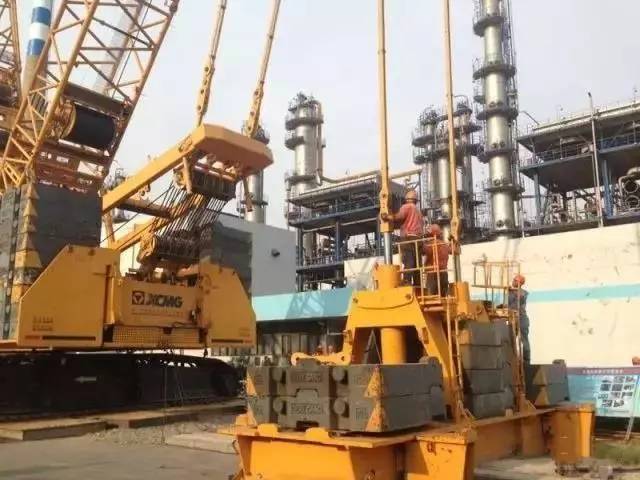 这台650吨的起重机,由30多辆重型卡车将零部件运抵吊装现场,并现场组装。一边一条一米多宽的履带增加了其移动性,百米长的吊臂高耸入云。