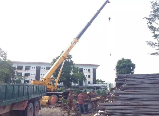 QY25K5汽车起重机吊装钢筋