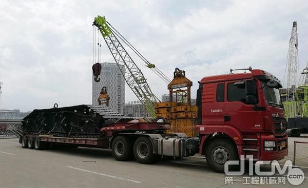 此台车为客户自提,运输车辆全部由客户自己安排,为帮助客户节省运输成本,履带吊交付团队协助客户一起对所有物资的装车尺寸进行清理,最终和客户一起敲定了最优的运输方案。