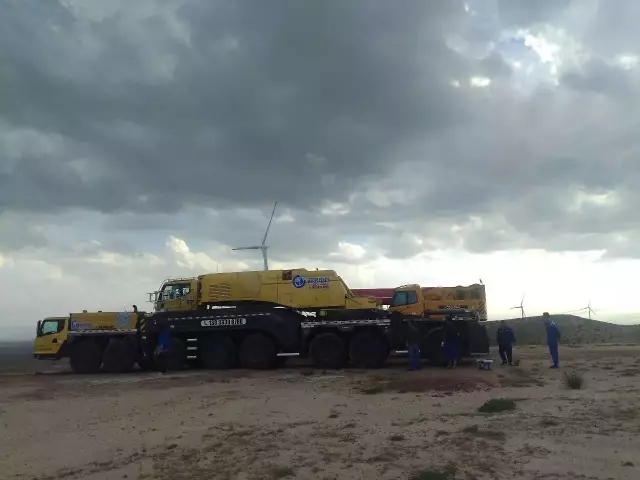 2017年7月19日,西北某风电场,全球首台八轴XCA1200全地面起重机在万众期待中正式亮相,圆满完成首装首吊!