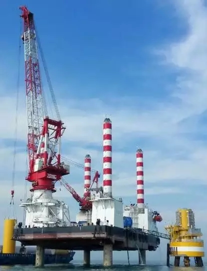 1000吨自升式多功能风电施工船是国内自升式海洋平台最大规格的绕桩式起重船。本项目研发的起重机设备涉及设备种类多,是典型的机电液一体化作业系统。可以满足我国风电安装平台在各海域开采的迫切需求,本项目将以其优越的性能、高可靠、高自动化程度的特点,以及其价格优势,在海上风电安装市场有着很强的竞争力和很好的市场前景。2016年4月至6月,施工船在福建蒲田进行海上风电安装作业,中交三航局现场对起重机的各项技术指标进行了实地验证,尤其是对起重机创新设计的全国最大整体锻全回转支承装置、大吨位吊钩测试、起重装备的设计和技术性能等进行了重点使用,成功完成风机的吊装任务。