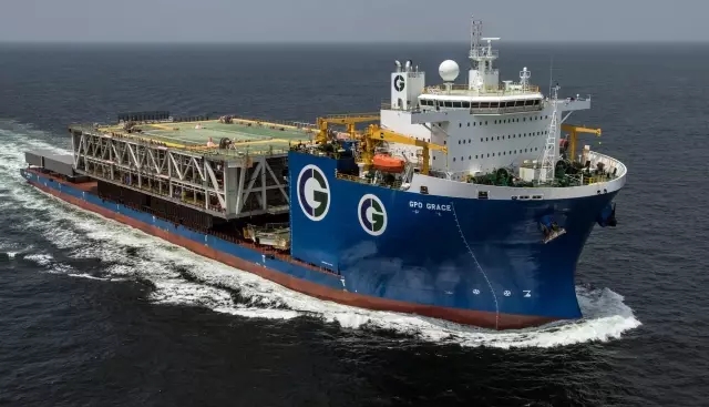该船名为GPO Grace,总长225米,型宽48米,有效装载面积8784平米,主甲板最大潜深15米,配备DP2动力定位系统,设计航速14.5节。该船交付至今,最高航速达16.3节,载货平均航速13.3节。