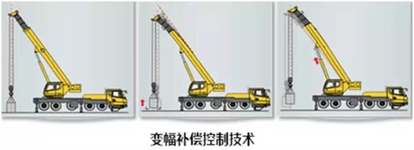 在卷扬起(落)过程中,自动控制变幅,实现实现对起落钩吊臂变形引起的幅度变化进行补偿,即在卷扬起(落)时通过自动控制变幅动作,从而解决起重过程中偏摆的问题,提升吊装精度,降低操纵难度。