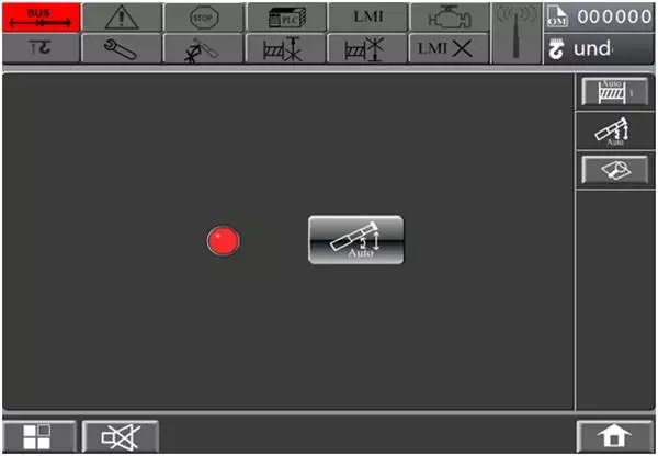 第二按钮为卷扬随动臂头模式,第三个按钮为卷扬随动地面模式。单击按钮,会弹出对话框询问是否激活臂头(地面)模式,选择√,激活卷扬随动,选择×,取消卷扬随动,卷扬随动功能实际是否激活以左侧信号灯为准,当信号灯为绿色时,表示卷扬随动功能已激活,红色则表示未激活。