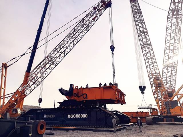 XGC88000和XGC16000都是徐工集团生产的极具代表性的吊装设备,此次“兄弟俩”联袂出场,是为了浙石化140万吨/年乙烯项目装置第一台超大型设备——2#丙烯精馏塔。浙石化2#丙烯精馏塔,设计高度110.63米,内直径7.7米,吊装重量1800吨,是目前全世界最大乙烯裂解装置的2#丙烯塔,由于起吊组装技术难度较大、设备需求选型较为苛刻,历经多次计算、讨论、调研,主建方决定由徐工广联公司的XGC16000将与XGC88000共同承担并完成此次塔吊装任务。