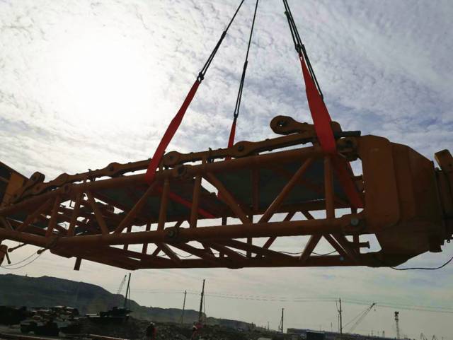 据了解,为了完成这次吊装任务,徐工集团高度重视,专门成立了以主机厂装配分厂厂长带队的14人安装调试服务队。设备上岛前,调试队员就提前登岛,并与现场的中石化起运公司技术人员进行充分沟通,对组装调试现场进行调研,从而对设备结构件的摆放做出科学高效的规划。