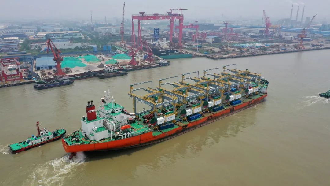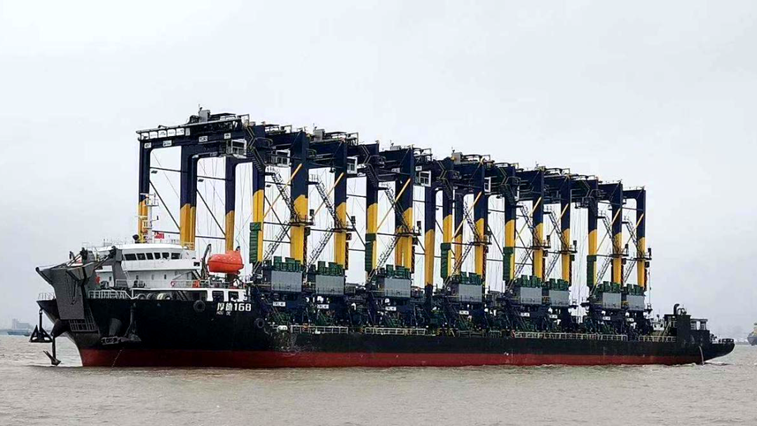6月2日,振华重工为和黄盐田国际建造的首批8台自动化轮胎吊启航发运。