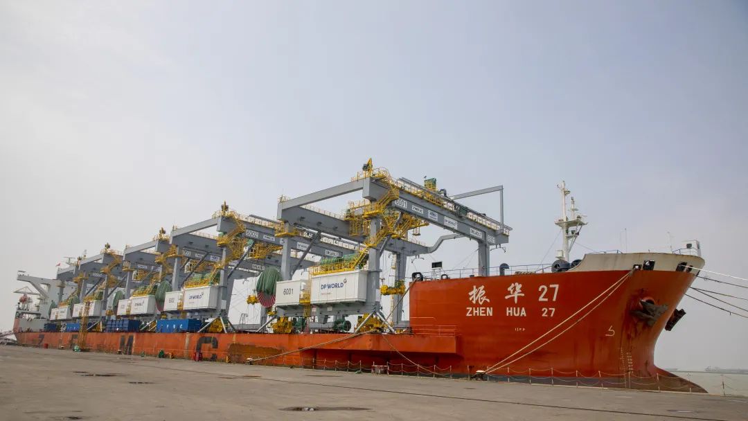 6月4日,“振华27”轮搭载着温哥华5台自动化铁路轨道吊从南通分公司发运。