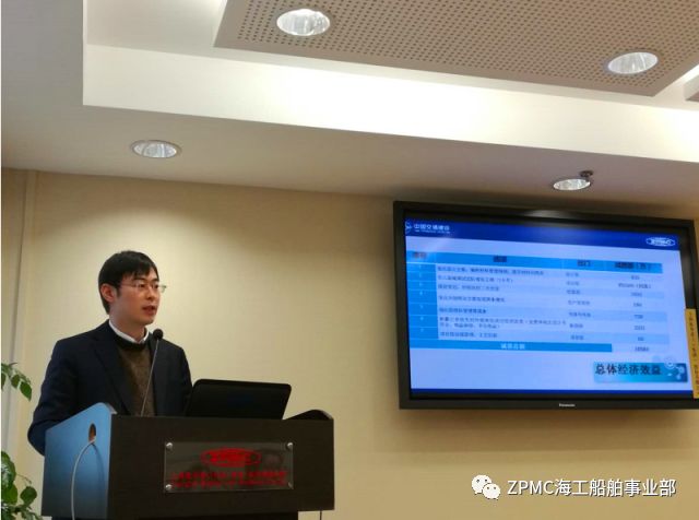 此次评选会议由海工船舶事业部总经理助理陈相飞进行汇报。