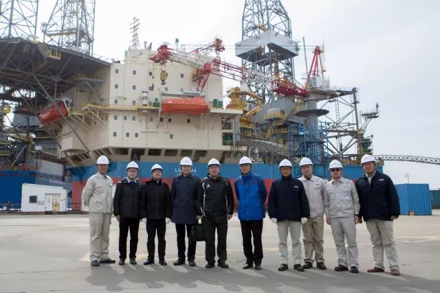 张鸿文一行深入海工平台事业部车间和码头,检查了各在建项目制造、调试情况。