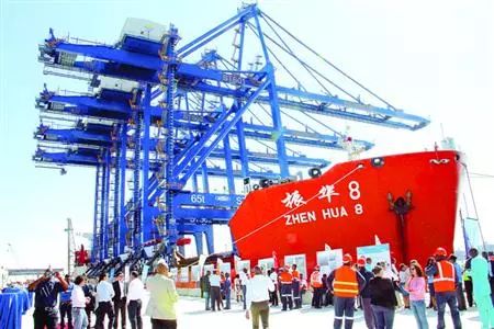 中国驻纳米比亚大使张益明说,这些岸桥不仅是港口建设的关键,也标志着集装箱码头即将完成,沃尔维斯湾港将成为西南非洲大西洋沿岸的一颗耀眼明珠。期待着纳米比亚可以以沃尔维斯湾港扩建为契机广泛参与“一带一路”建设,搭上中国发展的“便车”。