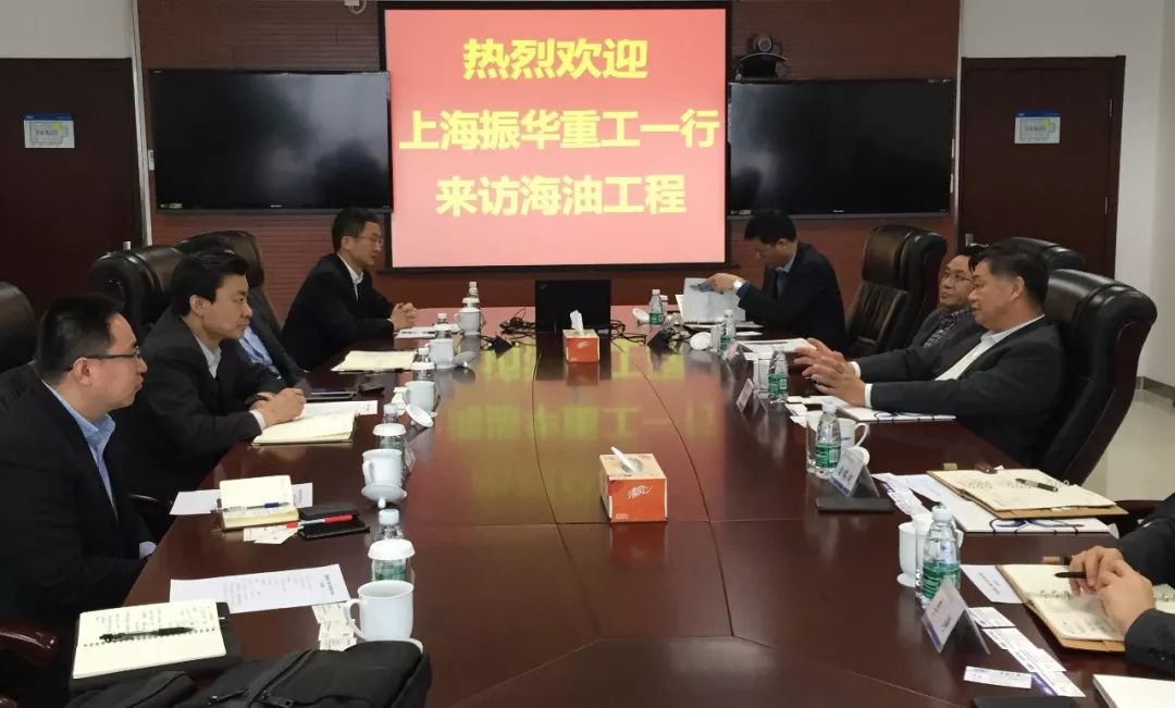 2月23日,振华重工董事长、党委书记朱连宇一行在天津拜访了海洋石油工程公司,海油工程总裁、党委书记金晓剑出席接待。双方讨论交流了油气领域现状及发展趋势,并围绕海工领域的合作进行了交流。