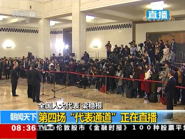 3月13日上午,十三届全国人大一次会议第四场“代表通道”采访活动在人民大会堂举行,三一重工董事长、全国工商联副主席梁稳根等9名全国人大代表回答了中外记者的提问。