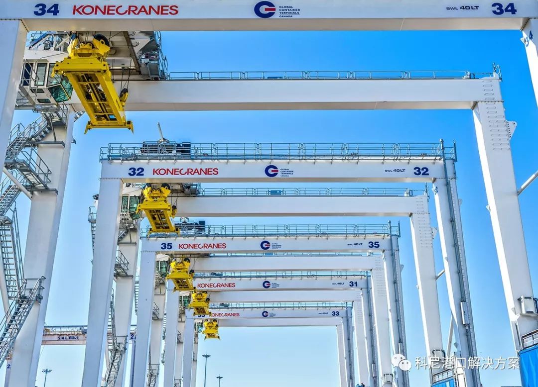 四台科尼轮胎式集装箱门式(RTG)起重机将在2019年第一季度交付于温哥华的GCT Vanterm码头。另外六台起重机也将在2019年第一季度交付于不列颠哥伦比亚省三角洲GCT Deltaport码头。各码头已运行十二台科尼轮胎式集装箱门式(RTG)起重机。