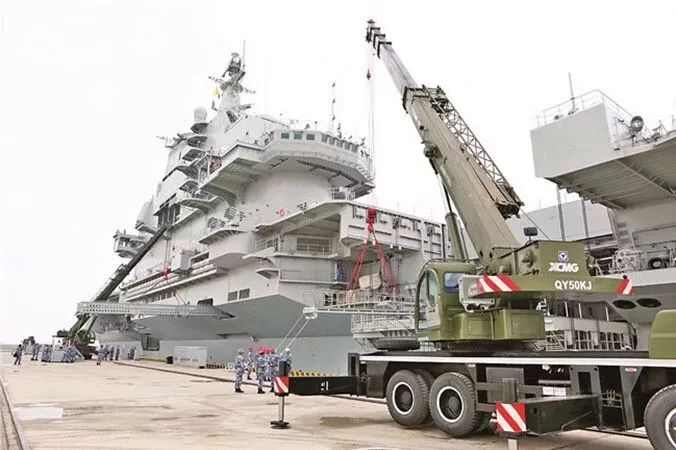 据相关媒体报道,近日,中国首艘自主建造的001A航母,正在进行最后的收尾工作,甲板上已经开始全面清理,此前密集的施工脚手架已经拆除,即将涉水海试!而更引人瞩目的是,7台徐工起重机出现在飞行甲板上!