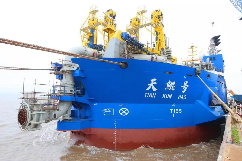 “天鲲号”由中交天航局投资并联合设计、振华重工建造,我国拥有完全自主知识产权。“天鲲号”长140米,宽27.8米,吃水6.5米,设计航速12节,总装机功率25800千瓦,最大挖深为35米,最大输泥距离15千米,输泥效率为每小时6000立方米。