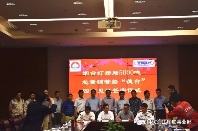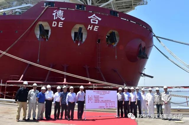2018年6月1日上午9点58分,由上海振华重工(集团)股份有限公司为烟台打捞局建造的“德合”号打捞起重铺管船项目,在振华重工长兴基地隆重举行四方见证仪式。标志着振华重工已全面掌握此类船舶的建造技术,进一步提升了振华重工在高端海工市场的核心竞争力。烟台打捞局、上海振华重工、上海海事局、中国船级社相关代表及美国船级社、佳豪设计院相关代表共同出席并参与了四方见证仪式。