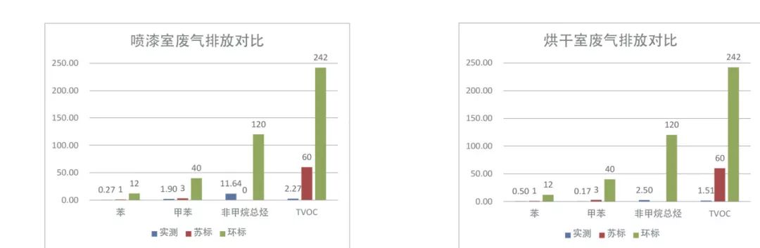 烘干室产生的含二甲苯有机废气采用蓄能式废气焚烧处理设备(RTO)处理,净化后浓度降至0.0058g/m³,净化效率达到99%以上,热回收率高达95%。喷漆废气采用文丘里式净化+活性炭吸附处理,将水雾化后与含漆雾的空气充分混合,再通过挡水板将含漆水与空气分离,可有效提高漆雾的捕集效率,漆雾净化效率为98%以上。