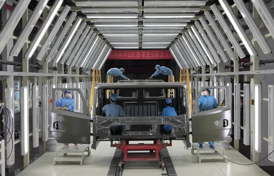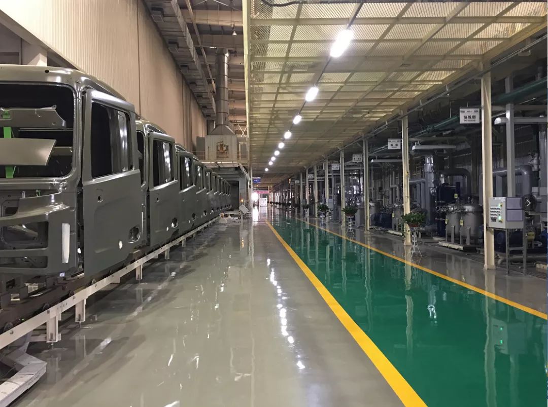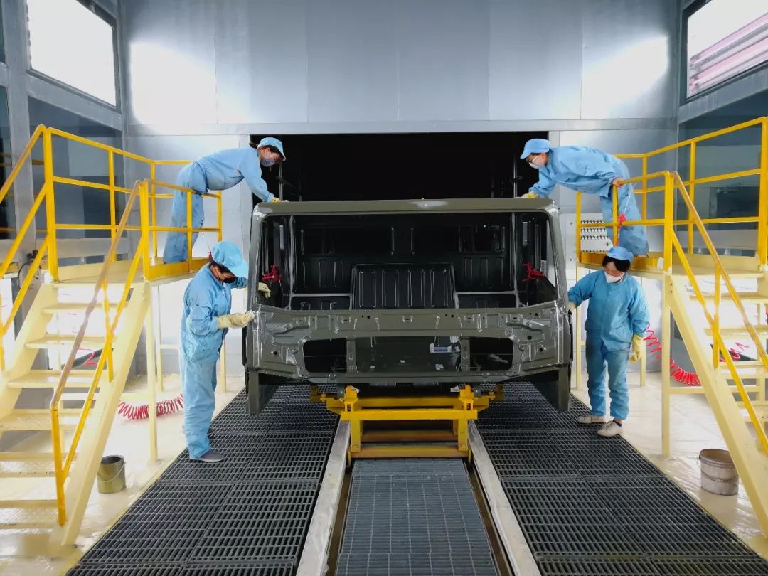 涂装车间生产设备主要通过电控系统实现互联互通,设备全自动输送、转接,底漆、面漆全部采用ABB机器人自动喷漆,喷漆质量可达轿车标准,处于国内领先地位。