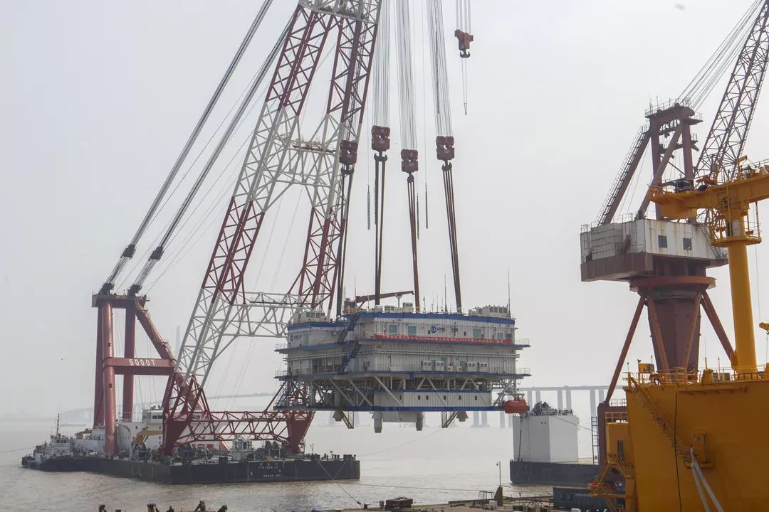 7月29日,振华重工为三峡新能源盐城大丰公司建造的“三峡新能源江苏大丰300MW海上风电项目220KV海上升压站”,在海工平台事业部码头梳理完成装船吊装工作,将于近日运输至海上择机进行海上吊装安装工作。