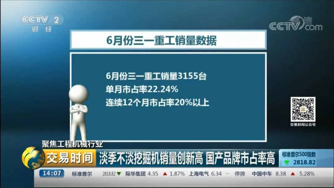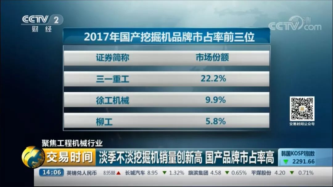 近期,CCTV《交易时间》深度报道了当前工程机械行业“淡季不淡挖掘机销量创新高”的良好发展态势,并详细比对了三一重工等各家企业的经营现状。其中,三一重工各项业绩数据全面领跑,龙头地位凸显。点击视频,看央视的权威解读。