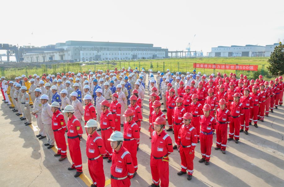 海工平台事业部领导班子成员、各部门干部骨干、本工队伍班组、分包现场负责人、分包商自检员及全体质量主管共计180余人出席仪式。