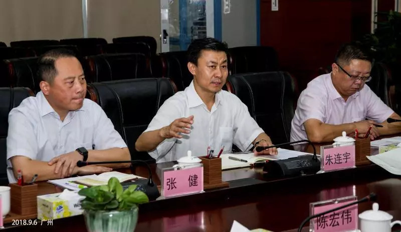 9月6日,振华重工党委书记、董事长朱连宇一行拜访广州港集团,广州港集团党委书记、董事长蔡锦龙出席接待。