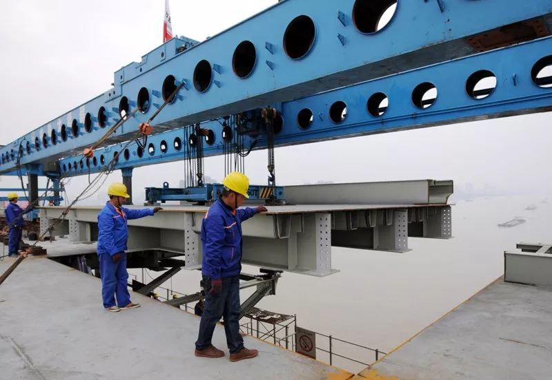 徐工TJ50架板机,整机采用双主梁结构、自平衡过孔方式,结构紧凑、轻便灵活,能够最大程度兼顾大桥顶部空间对装备尺寸的限制。起重小车采用创新的U型梁设计,下沉于主梁内侧,大幅降低起吊桥面板的重心,克服了长江河道内风况不稳定的不利工况,保证施工安全。活动式支腿设计,能够满足零拆解变幅架设,落梁精准对位。定制化的研发,不仅为我国跨江桥梁改造施工领域提供了装备基础和技术升级,同时具有显著的社会效益。