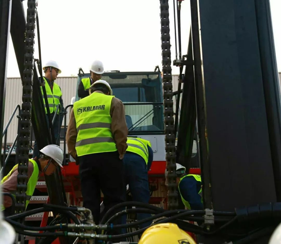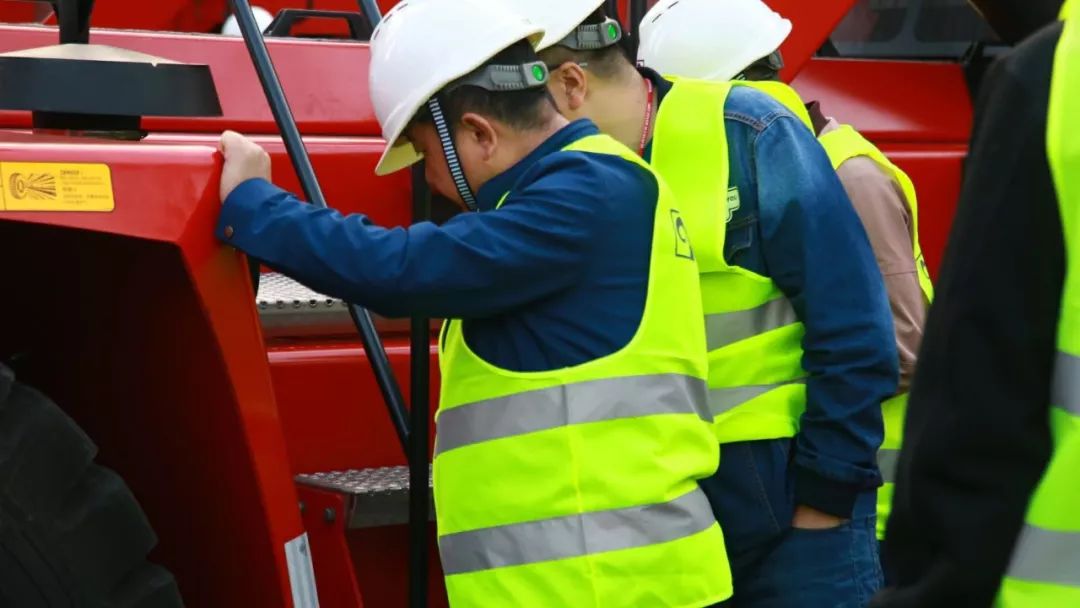 设备表演之后,卡尔玛活动小组还安排了设备的参观环节,为现场嘉宾分组讲解设备性能和标准维保演示。参观过程中,嘉宾们也亲自登上智选设备的驾驶室,在卡尔玛专家的指导下进行试驾,亲身感受产品坚固可靠的质量和人性化的设计。
