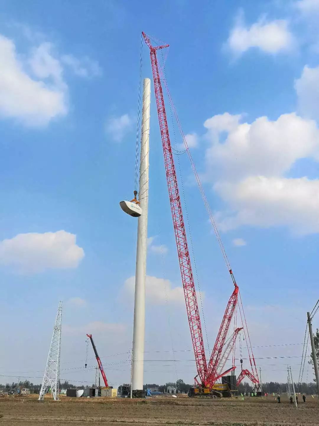 2018年10月17日下午,河北邯郸市远景能源风电项目,石家庄恒泰吊装有限公司刷新了国内2.5MW风机吊装的新纪录,采用三一SCC6500A将一台远景能源EN141/2.5MW风机送到了150米的高度,创造了中国风电的又一里程碑事件。