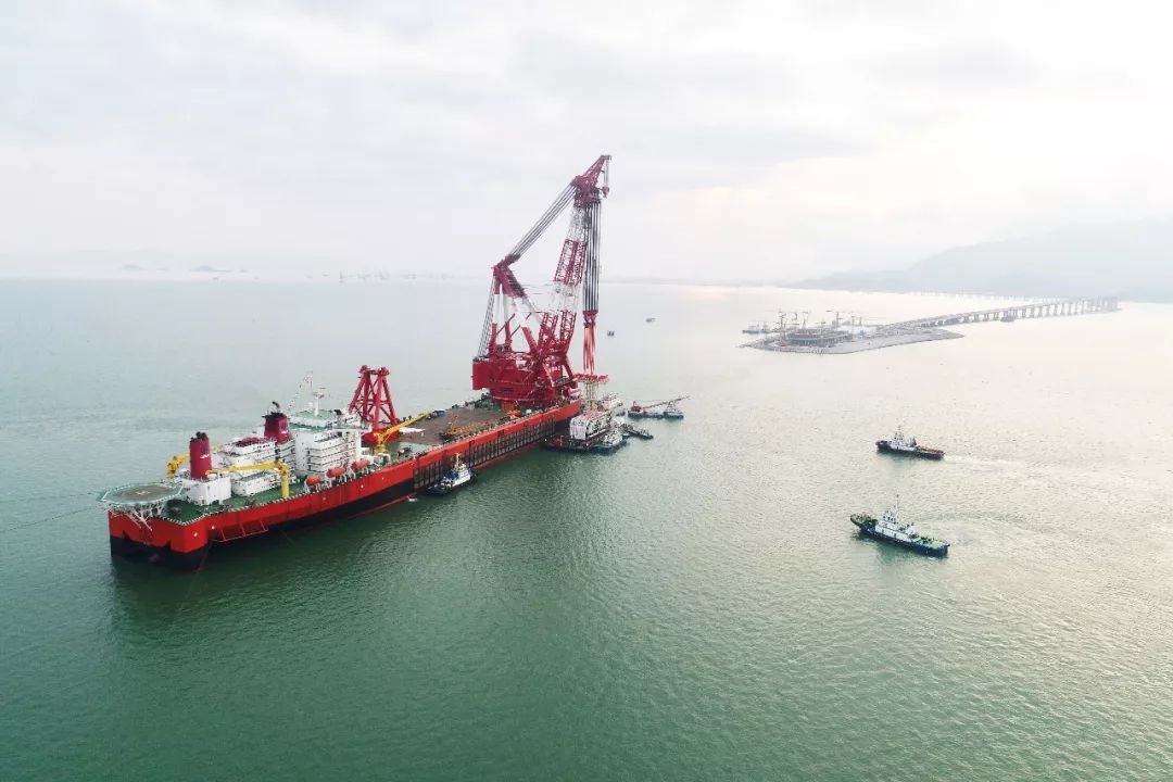 2017年5月2日,“振华30”轮“拎起”6000吨重的最终接头,锲入水下27米E30和E29沉管接头处,顺利完成最终接头的吊装沉放,对接精度达到毫米级。