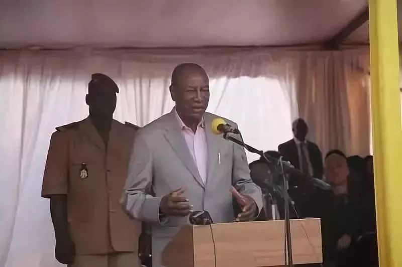 几内亚总统阿尔法·孔戴在启动仪式上讲话