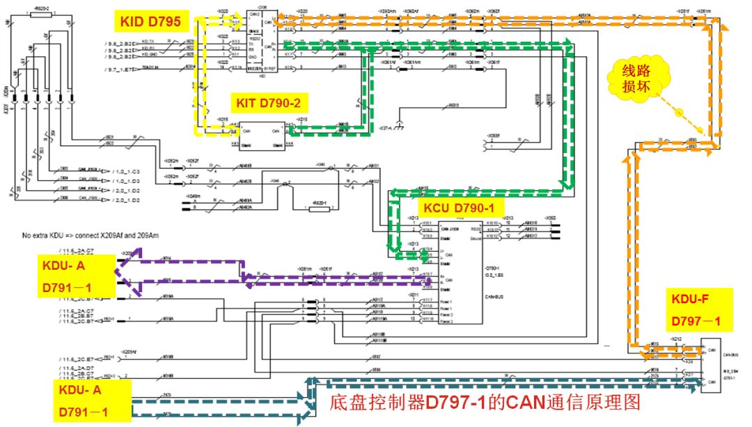 下图是底盘控制单元D797-1的CAN 通信原理图: