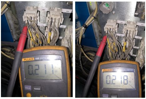 接着,维修人员开始排除通讯电路电平异常原因。顺着设备线束检查,各连接插头正常。但当剥开线束检查时,维修人员发现线束在车架大梁转弯部位摩损,其中一条通讯线已经磨断,形成虚接状态。因此维修人员可以断定此通讯线路磨损为设备急停无法行走的原因。