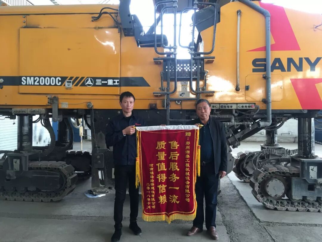刘国庆的服务态度也打动了客户,在现场为他授予了锦旗,以表感谢。此项目负责人尚益民说道:“三一郑州湘泰工程机械设备有限公司营销、服务在这次高速公路建设中全力配合我司工作,促使工程保质、保量完成,豫西服务工程师刘国庆积极参与工程设备技术服务售后工作,保证设备的正常运转。高速项目两个工程局也是非常肯定三一设备产品质量与售后服务!”
