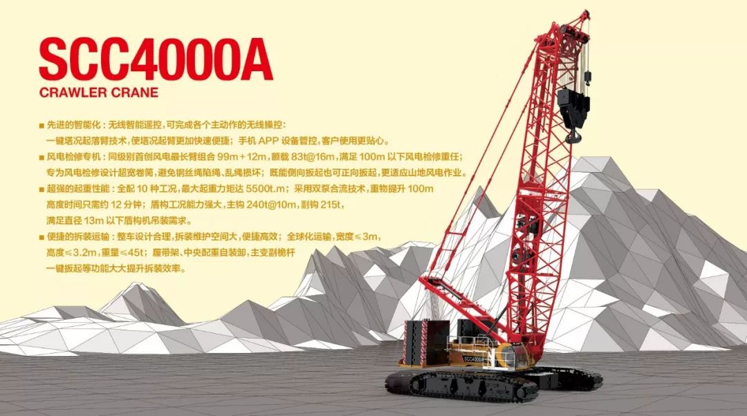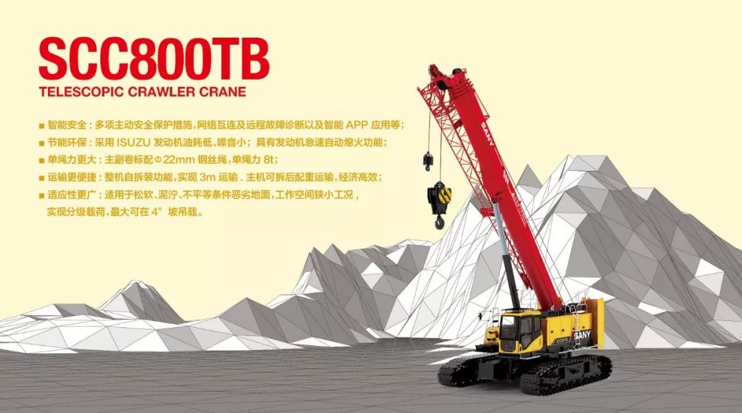 履带起重机则是今年名躁四方的“山地风电检修王”SCC4000A,以及SCC1000A和最具用途的80吨伸缩臂SCC800TB。