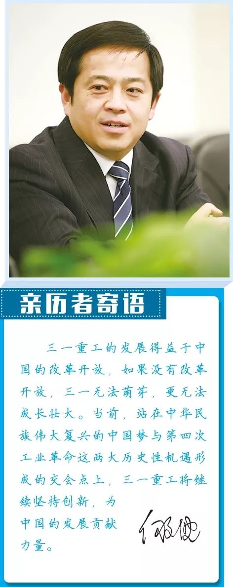 向文波表示:“我们是改革开放受益者,没有改革开放,就没有三一。当年工程机械行业下滑时,我在董事会的汇报是‘不忘初心,坚定不移地把三一重工办成一个世界级的企业’,至今,这仍是我矢志不渝的目标。”