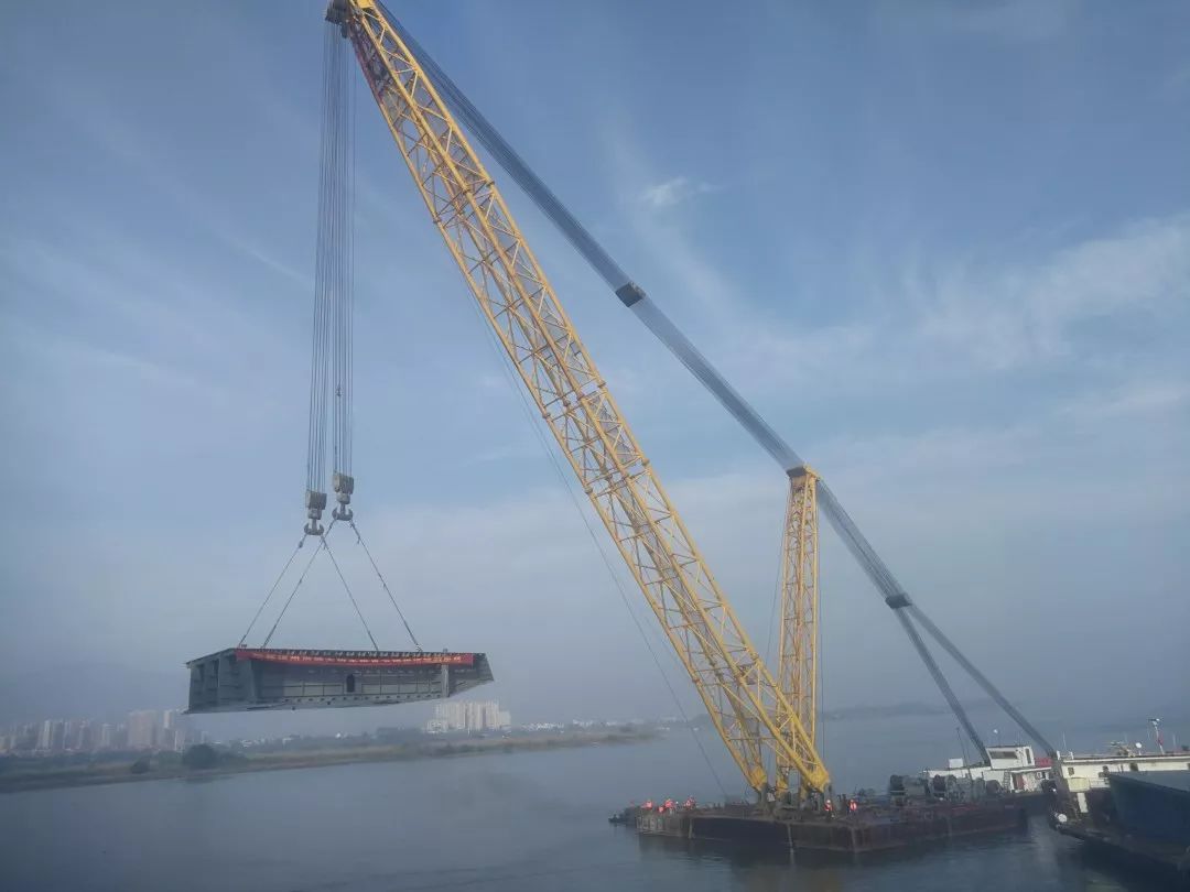 12月4日,由上海振华重工承建的福州洪塘大桥拓宽改建工程主桥钢箱梁首节段顺利吊装。标志着该项目正式进入了桥位钢箱梁架设施工阶段。