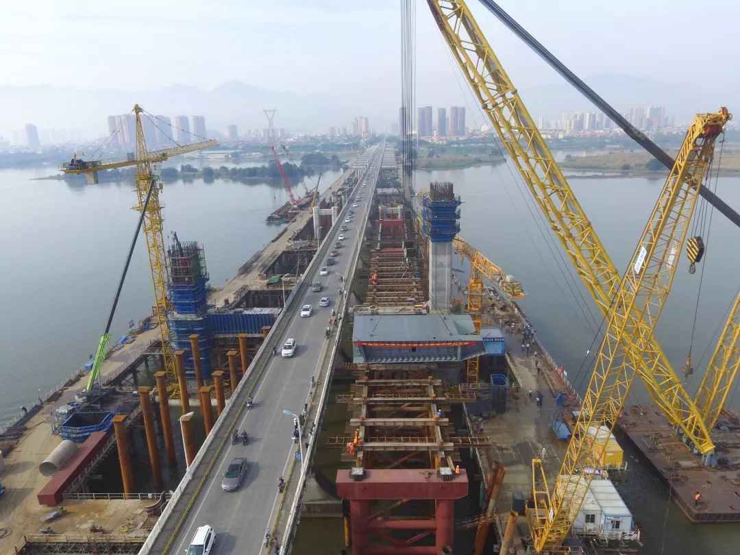 福州洪塘大桥采用单塔自锚式悬索结构形式,主跨150米,宽度达52米,采用双向8车道+非机动车道+人行道设计,门形单塔高度为71.3米。洪塘大桥施工时,在旧桥的两端各建三分之一的新桥,施工期间旧桥正常通行。两端新桥建成后,旧桥拆除,原位拼接剩下的三分之一,形成新洪塘大桥,预计2020年建成通车。