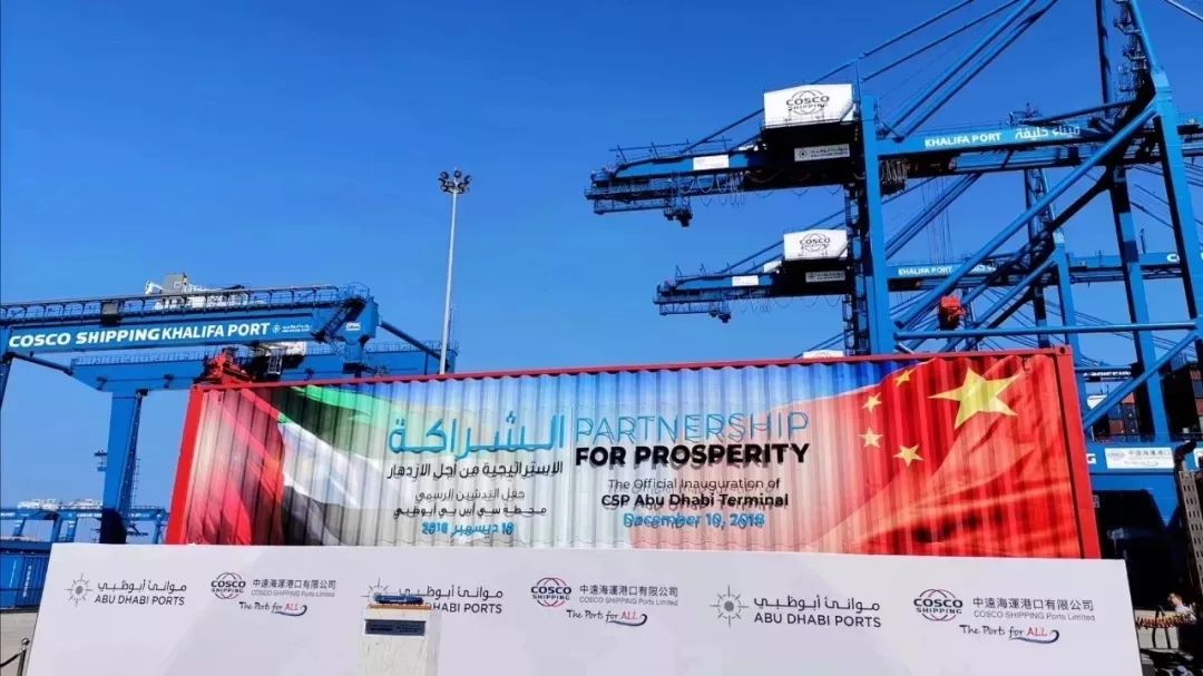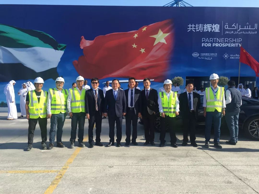 当地时间12月10日,中远海运港口与阿布扎比港务局合资的阿布扎比码头举行了开港仪式。国家发改委副主任宁吉喆、中国交通运输部副部长何建中、中国驻阿联酋大使倪坚、中远海运董事长许立荣等出席开港仪式。振华重工总裁、党委副书记黄庆丰,副总裁刘启中受邀参加仪式。