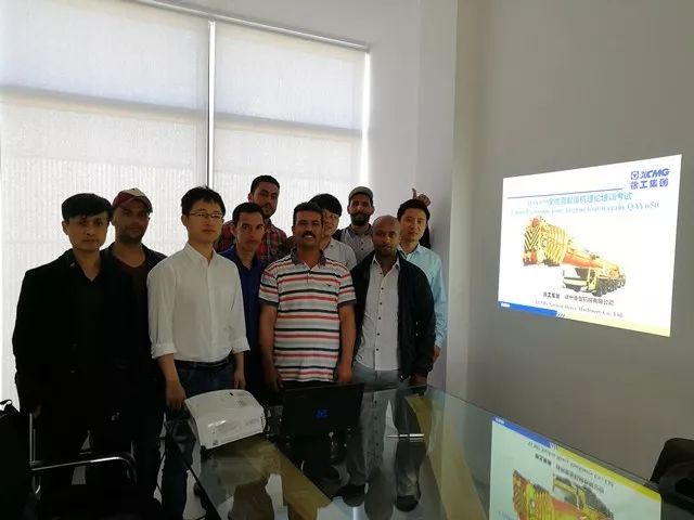 QY70K——客户操机手使用过的最大吨位起重机。“从QY70K直接到QAY650,他们的理论知识、操作习惯都要转变。”为了能让从未接触过大吨位单缸插销式起重机的操机手顺利过渡,摩洛哥QAY650首装首吊服务团队精心策划:“我们准备了一整套的课件、培训签到、理论考试、实操训练,通过了这一系列的考评,我们才会给他颁发起重机操作合格证证书。”